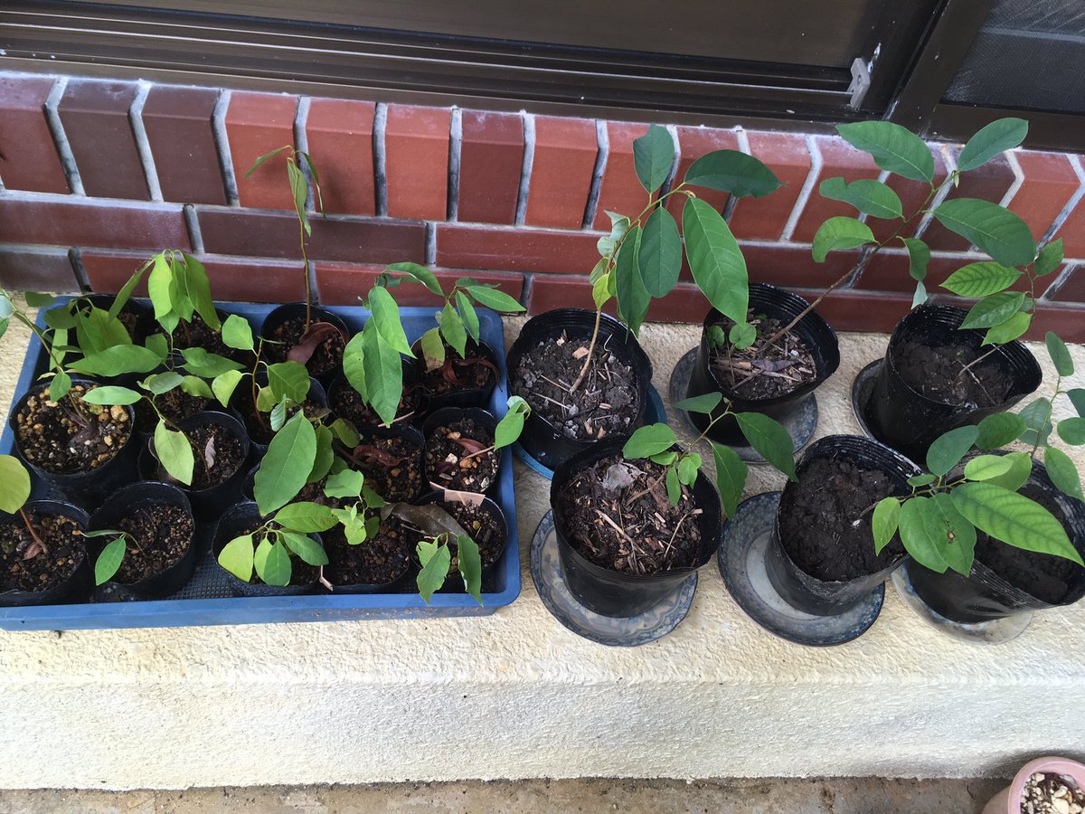 沖縄アテモヤの専門店 中村果樹園 Na Twitteru アテモヤ栽培記 こちらはアテモヤの苗の写真です 左側の小さいポット植えが種から育てたもの 右側の大きいポットが果樹園で自生していたもの 果樹園で自生していた方が育ちが良いようです