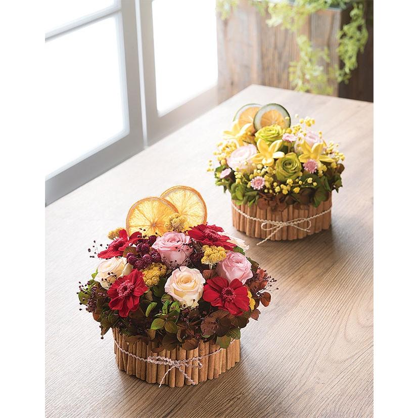 フラワーアレンジメント オアシスを使わないデザイン 芸術の秋らしいお洒落なデザインです