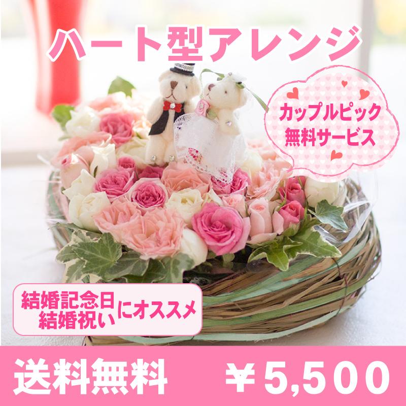 結婚祝い 結婚記念日 お祝い ウエディング 生花 バラ ギフト プレゼント ウエディングピック付き ハート型アレンジメント Ch1000400 愛媛のお花屋さんあぼんりーの花 通販 Yahoo ショッピング