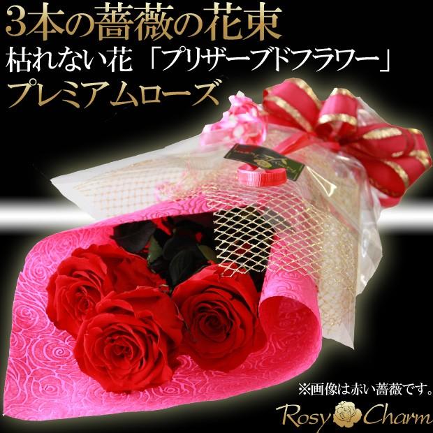 プリザーブドフラワー バラの花束 3本 薔薇 誕生日プレゼント 結婚記念日 プロポーズ 贈り物 大輪 プレミアムローズ 枯れない花 バラ 花束 Hanataba P 3 ロージーチャーム ヤフー店 通販 Yahoo ショッピング