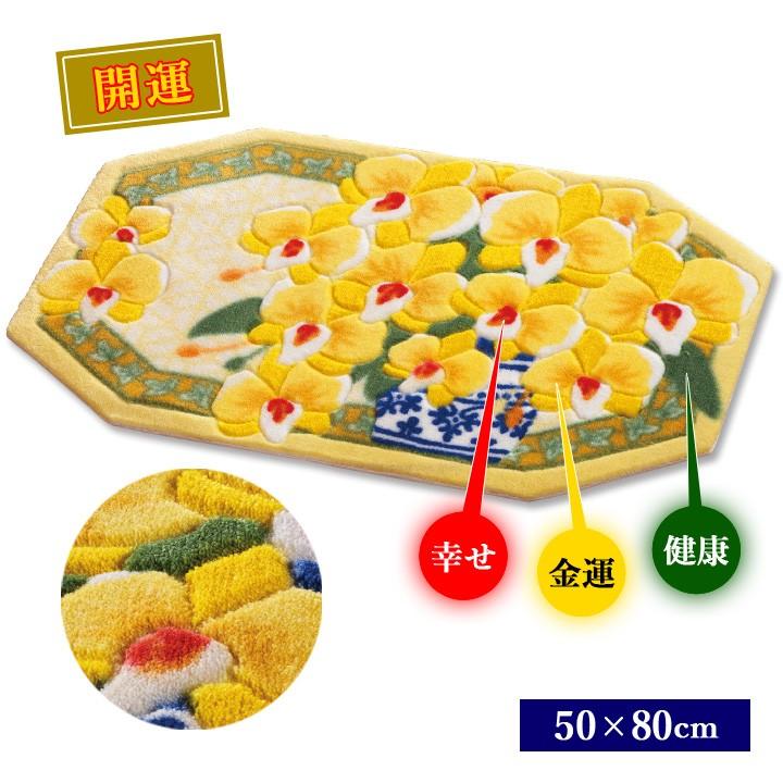 玄関マット 室内 床 マット 八角 胡蝶蘭 黄色い胡蝶蘭 開運 金運 風水 福 金運 財運 健康 長寿 出世 幸福 幸運の 黄色い胡蝶蘭 八角玄関マット 50 80cm 01386125 ジャストパートナー Yahoo 店 通販 Yahoo ショッピング